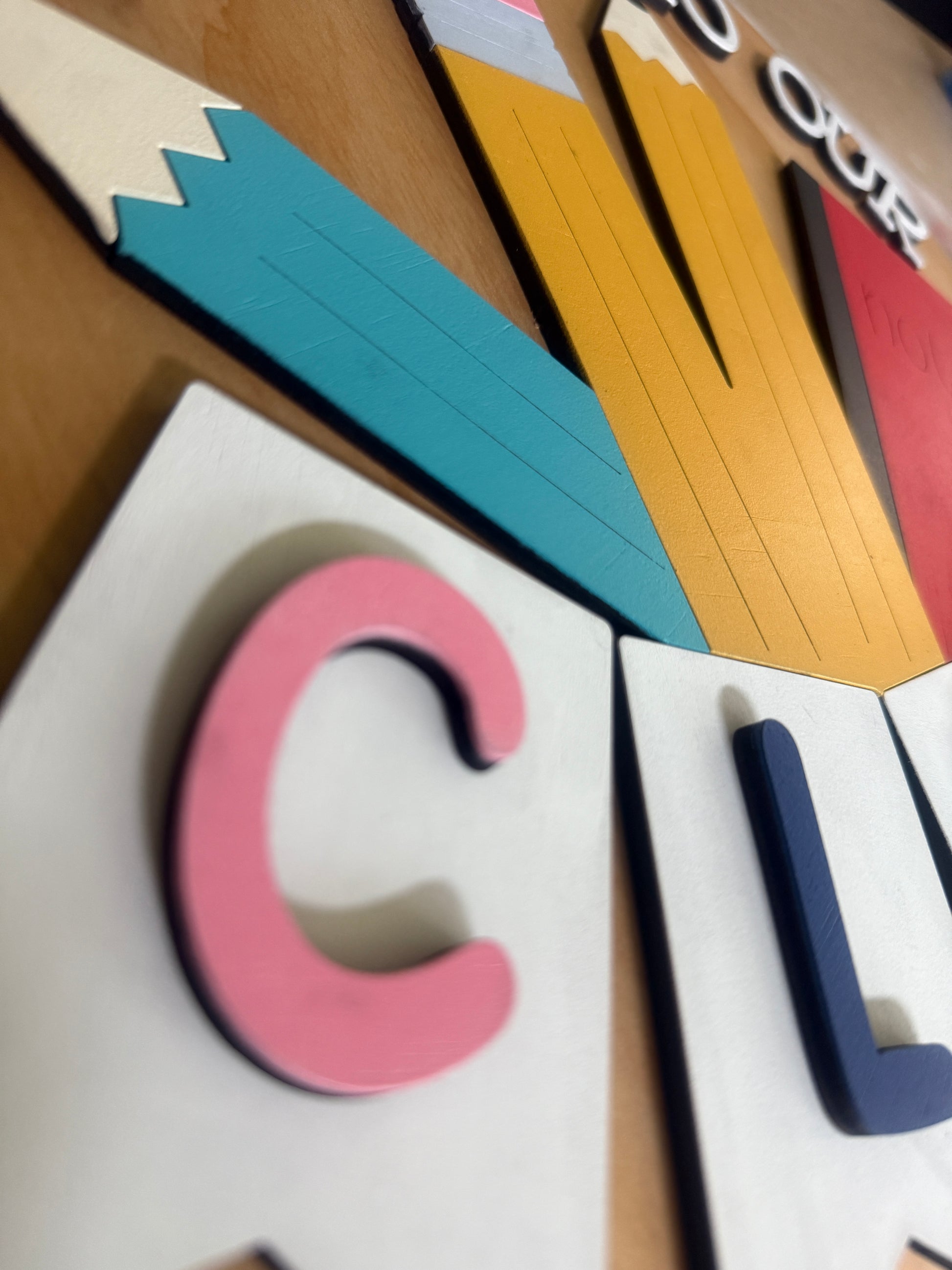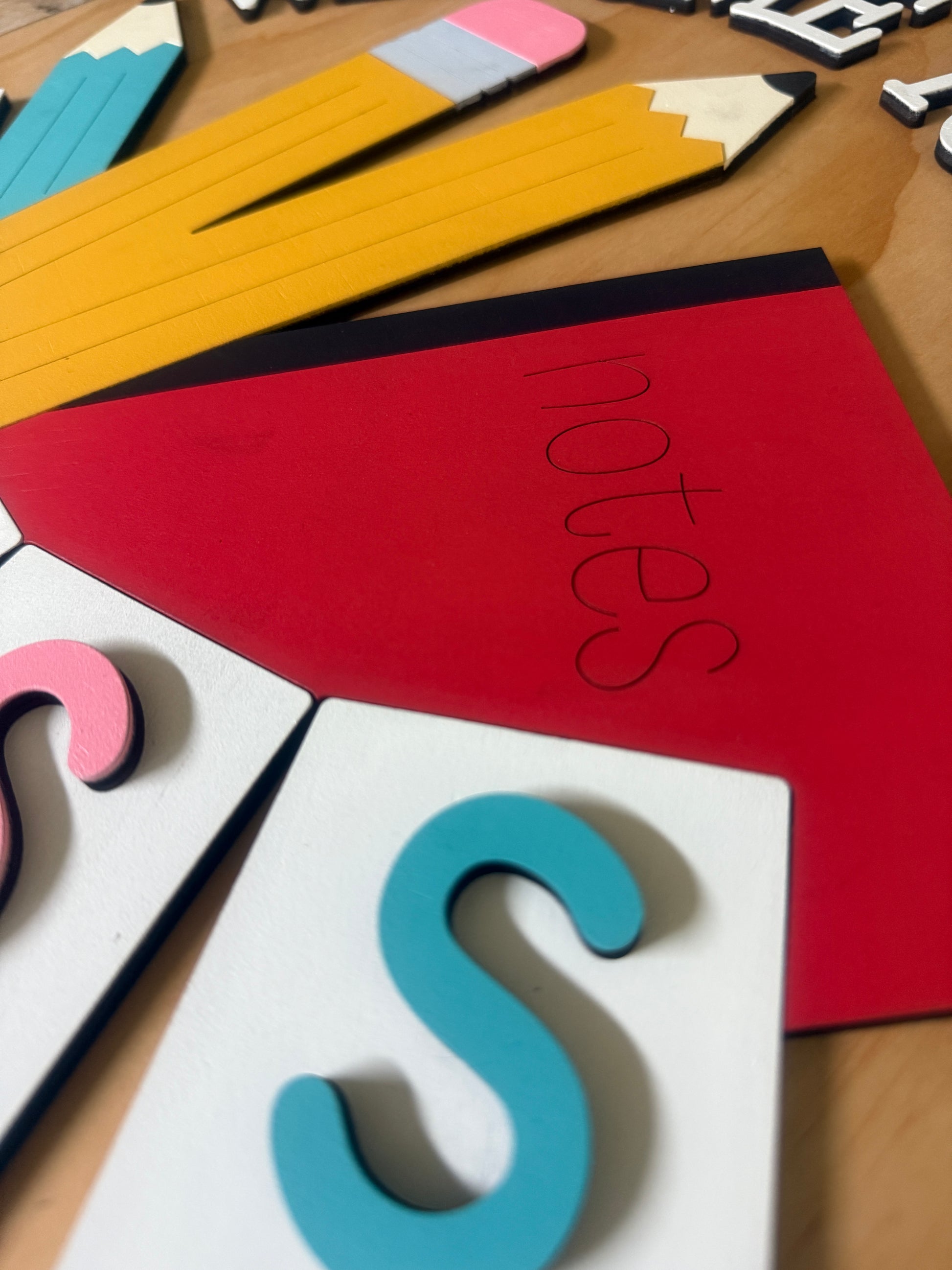 Create a warm and inviting atmosphere with our charming 16-inch "Welcome to Our Class" sign! This unique piece is meticulously laser-cut from wood and lovingly hand-painted with colorful pencils, a classic notebook, and a delightful "CLASS" banner. It's the perfect 16-inch round design for classroom doors, walls, or a teacher's desk, offering durable, high-quality craftsmanship built to last. Add a personalized and cheerful touch to any learning space – it's ready to hang!